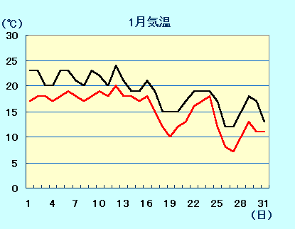 (気温)・・・毎日の気温です。黒線=最高気温、赤線=最低気温