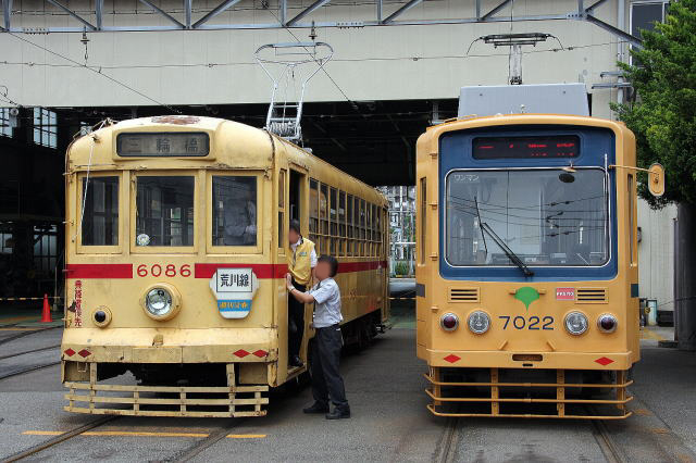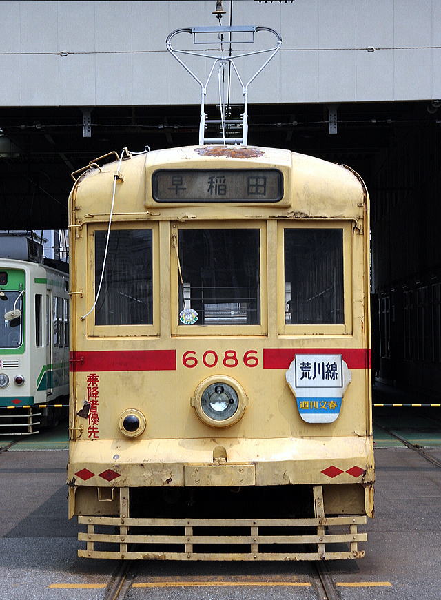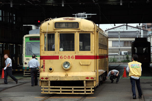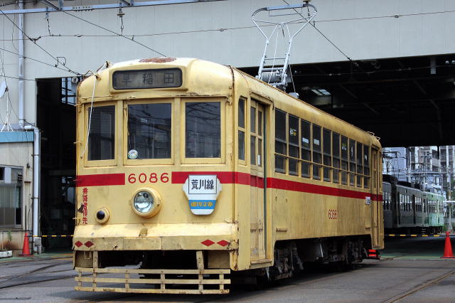 1978年まで荒川線で活躍していた6000形6086が、2008年、30年ぶりに荒川車庫に帰って来た。普段は大切に保管されているこの車両を太陽の下に出しての撮影会が、2009年6月14日に行なわれ、大勢のファンで賑わった。