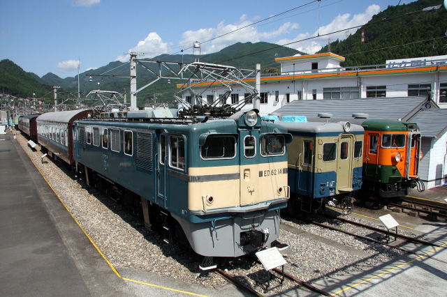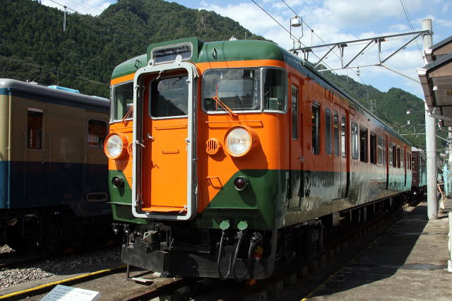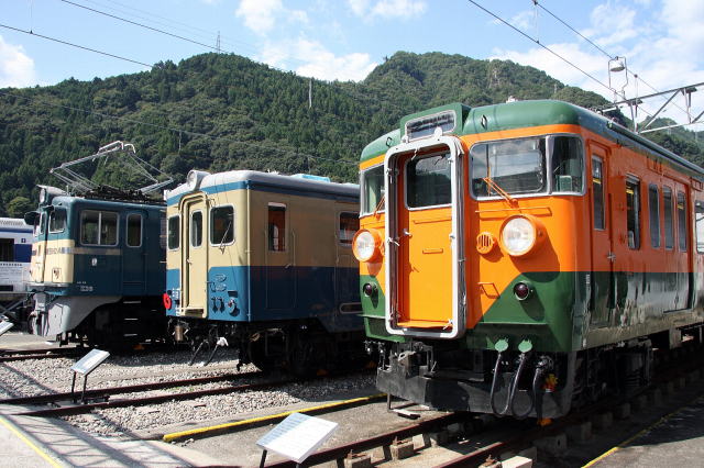 上2枚 閉園が迫った2009年8月、117系大垣車S11編成が懐かしい国鉄色に変更され、佐久間レールパーク号として、飯田線に頻繁に入線。