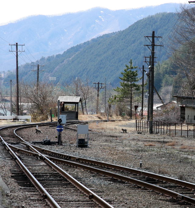 同時刻に山猿が二匹、線路を横切った。