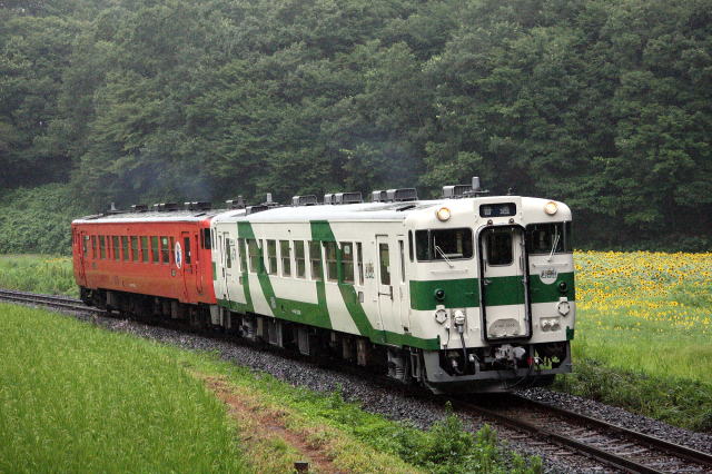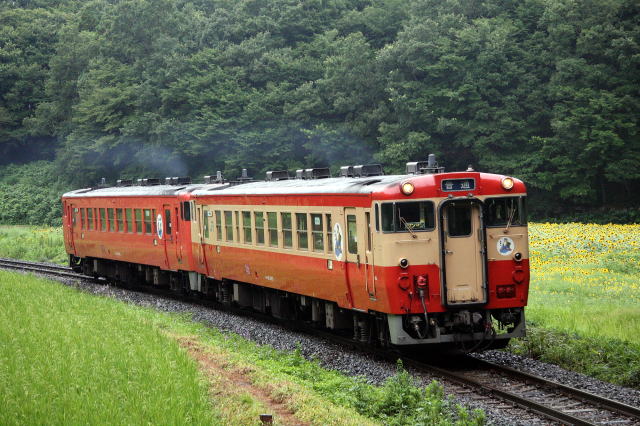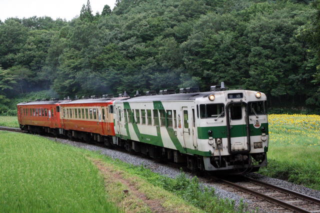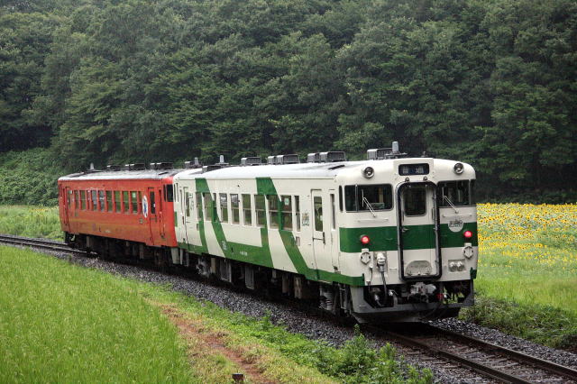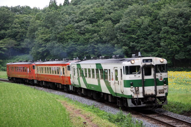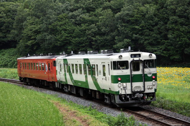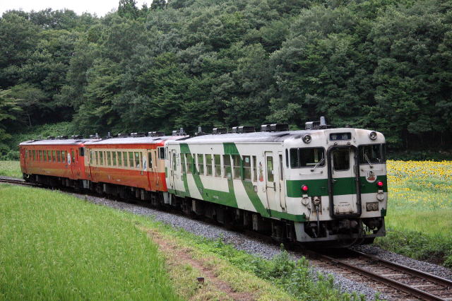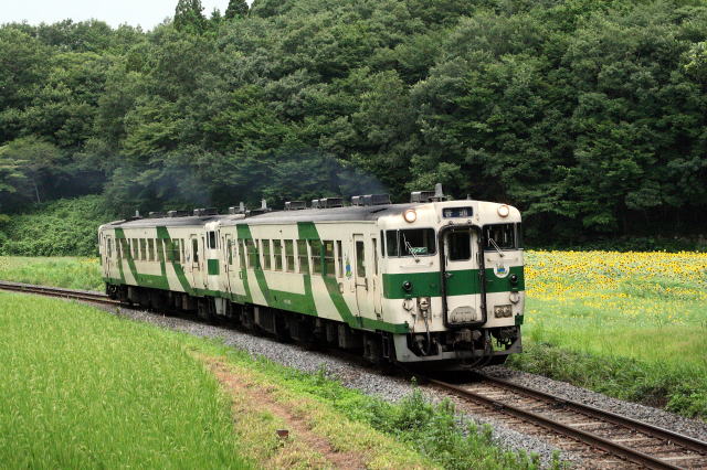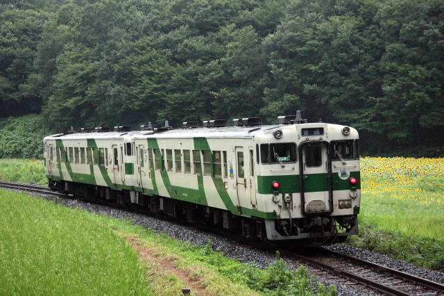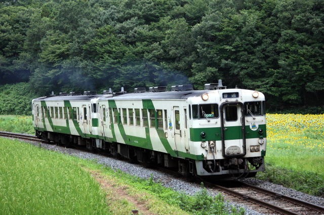 ひまわり畑とキハ40