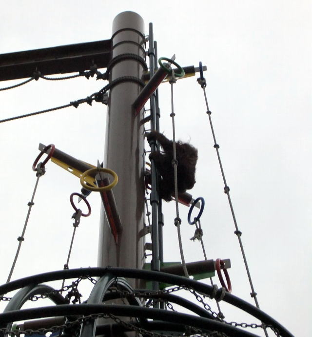 豪快に梯子を下りてくる、オランウータン
