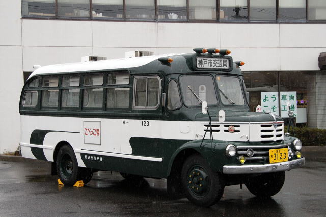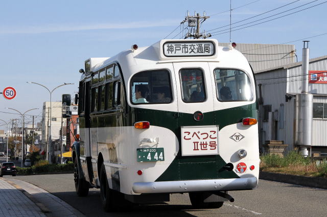 こべっこ二世号が、神戸市交通局バス車両工場へ到着