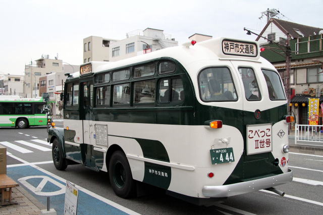 まず初めに、新長田駅のバス停で、こべっこ二世号を捉える