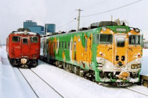 ※左の赤い車両は、映画「鉄道員」でキハ12として使用された車両です