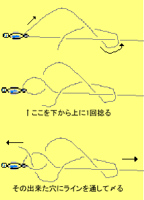 | 道糸やハリスをヨリ戻し等に結ぶ時の例です。 | |