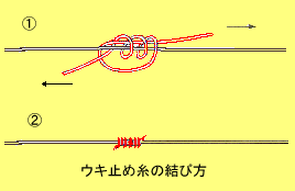 | 結び④ウキ止め糸 ↑の電車結びの応用です。 | |