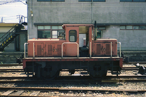 上熊本にも国鉄の協三10t機がいた。上熊本には熊本製粉と小野田セメントの専用側線があり、国鉄の 協三機が入換えを行っていた。使われなくなって駅舎横の貨物側線に置かれていた時のもの。 | ||||||||