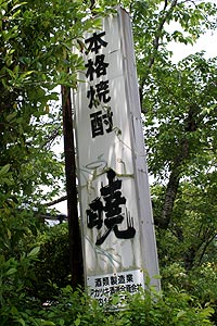 それからしばらく走っただろうか・・・。少し急な下りの右カーブを抜けたすぐ袂にその看板が立っていたのである。御覧の通りで庭先に植えられた木の間からニョキッと“暁”の看板が生えている。日曜日と言うこともあって蔵元の身内の方がされているという隣の酒店も閉まっており、仕方がないのでこの看板だけ撮影してきた塩梅だ。